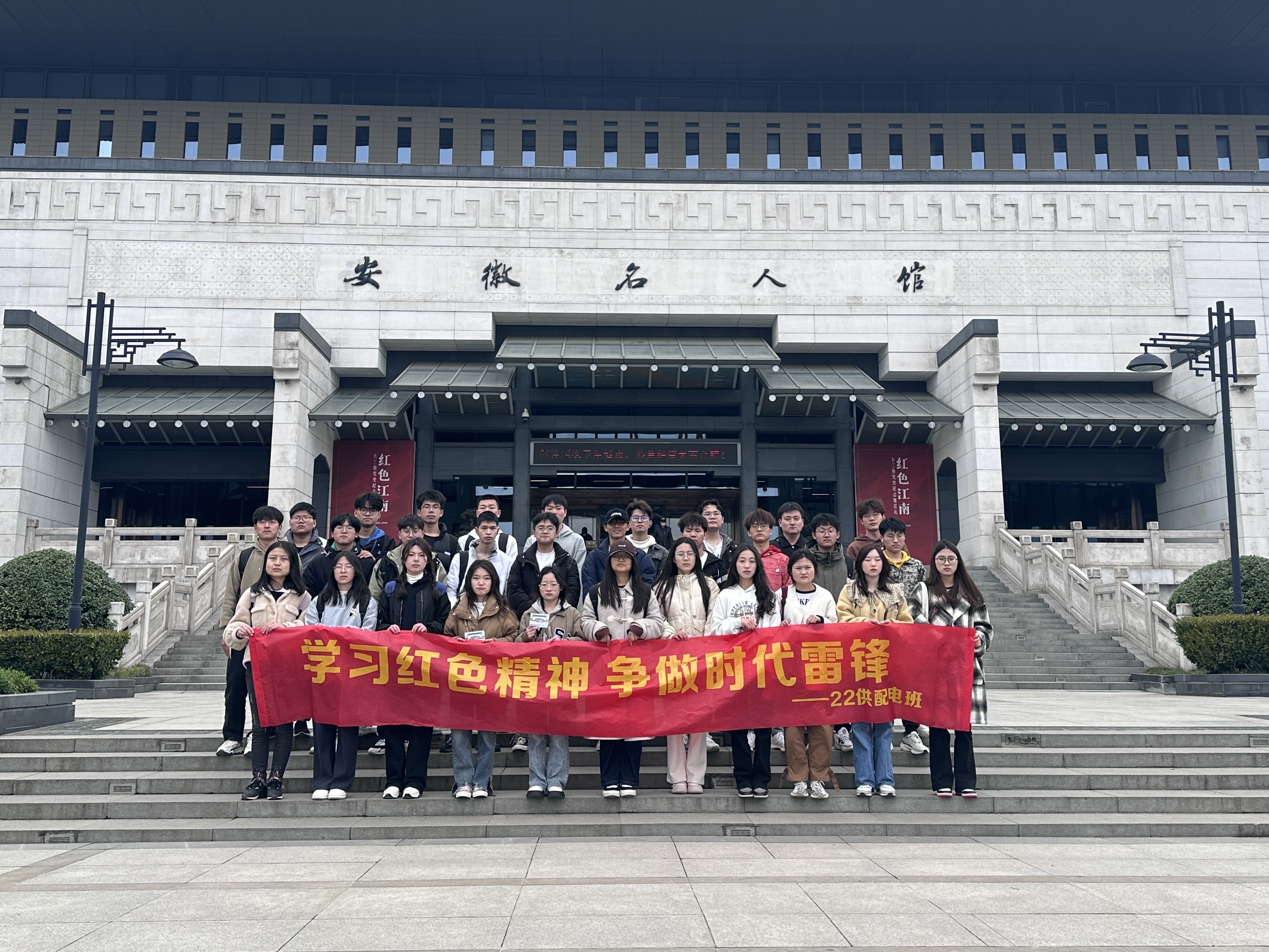 为缅怀革命先烈的红色精神和英勇事迹,大力弘扬革命精神和爱国主义精神,3月25日,在雷锋月与清明节的交汇之际,ky开元集团官网 22 级城轨供配电班开展了“学习红色精神 争做时代雷锋”的社会实践活动,参观爱国主义教育基地,感受红色文化,缅怀革命先烈。同学们前往渡江战役纪念馆及安徽名人馆进行红色学习活动,沿着习近平总书记考察时的足迹,重温习近平总书记重要讲话指示精神。